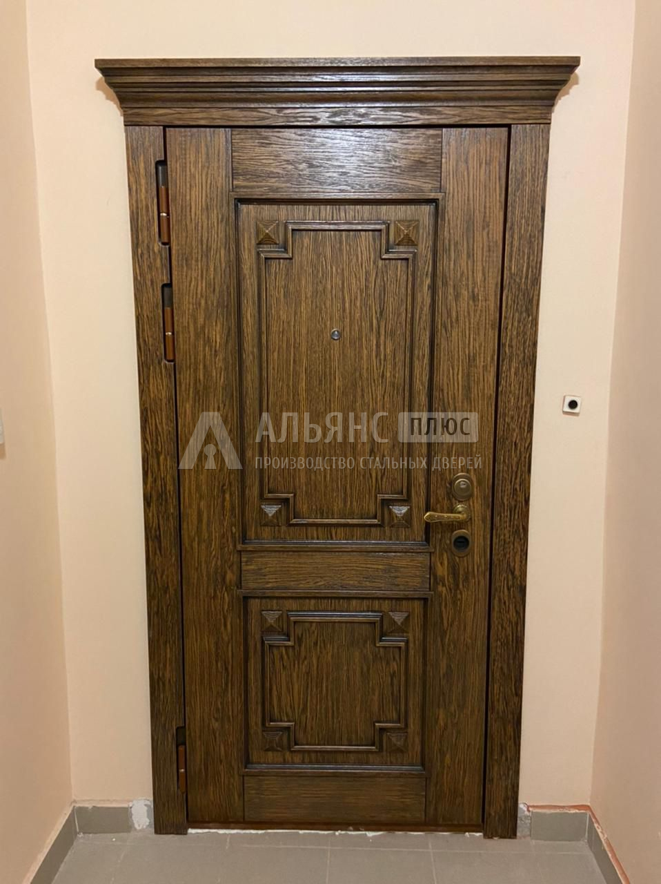 Хотелось, чтобы с улицы дверь была солидной, а в прихожей — светлой. Получилось именно так: снаружи тёмная стальная с 3D-рельефом, внутри тёплый «дуб» с лаконичными проточками. Замер в «Альянc Плюс» сделали быстро, мастер привёз образцы, подобрали оттенок и наличники в цвет. Собрали аккуратно, хлопков в коридоре почти не слышно.
